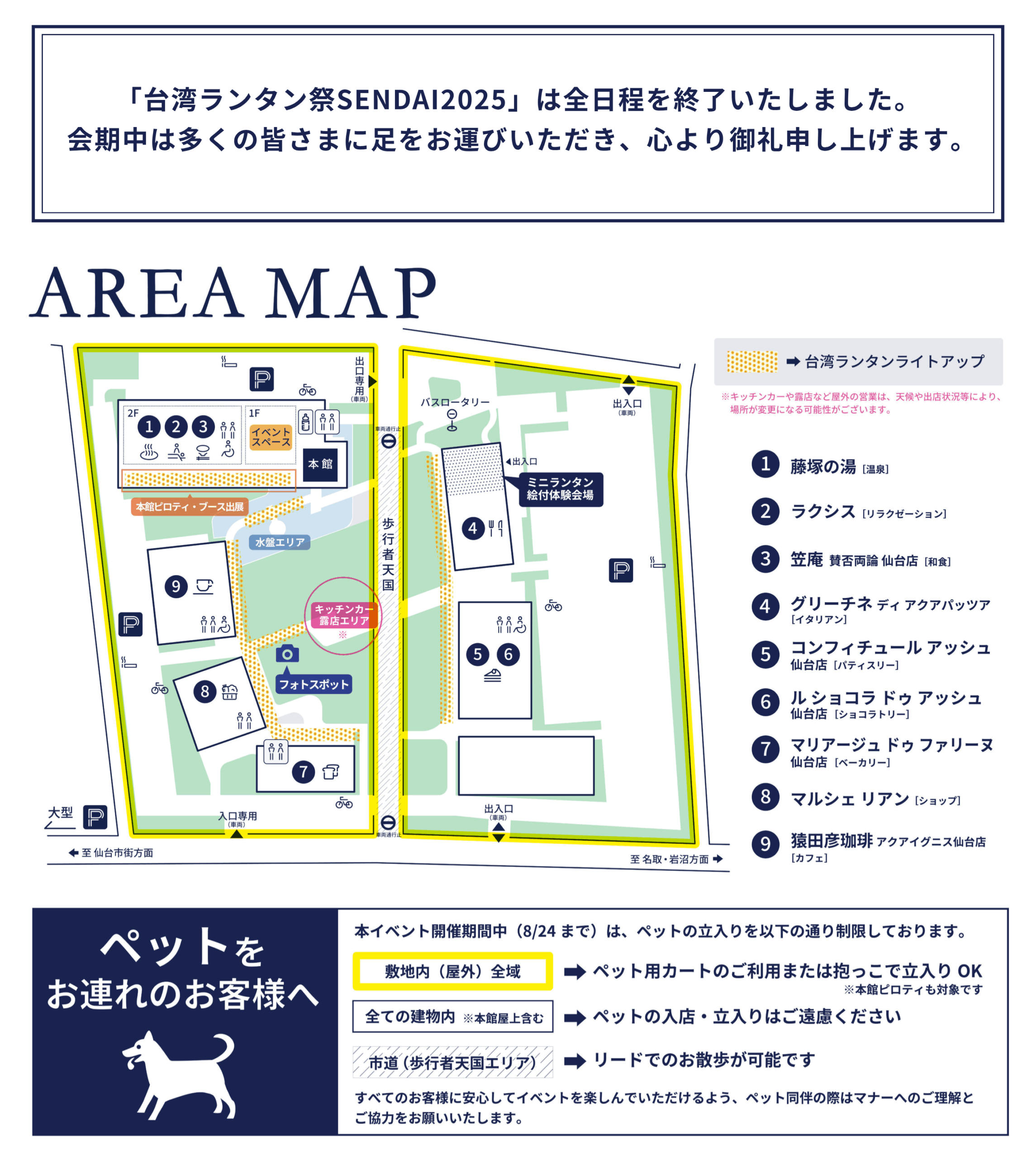 ※天候やイベントの開催状況により変更となる場合があります。最新情報は本ページまたは各店舗のSNS等をご確認ください。
